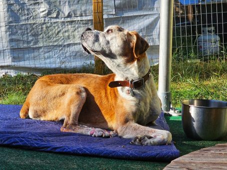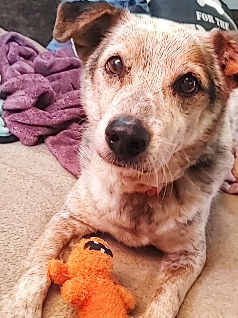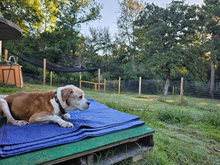 Certainly not where it all began since Andrea has rescued many dogs before him, but Abe is the "O.G." rescue at the inception of FoxGarden. Andrea was visiting family in Lampassas and found a dog on a kill list in North Texas. We took a four-hour detour on the way home and scooped up Abe. He had stage 4 heartworm, bad teeth, and arthritis, Abe is now our first intentional hospice rescue. He has sure surprised us! Now heartworm-free, Abe has been with us for about two years, and we cherish every extra day! Dementia often leaves him staring into corners, but we love him dearly.