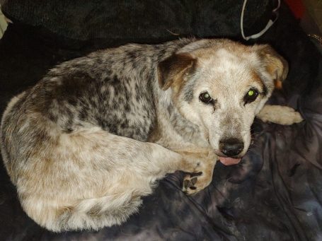 Andrea hit the road on short notice and swooped up this sweet senior from a Fort Worth-area shelter. Rocky can't stand and doesn't seem to hear much, either; however, he's finally home at FoxGarden.