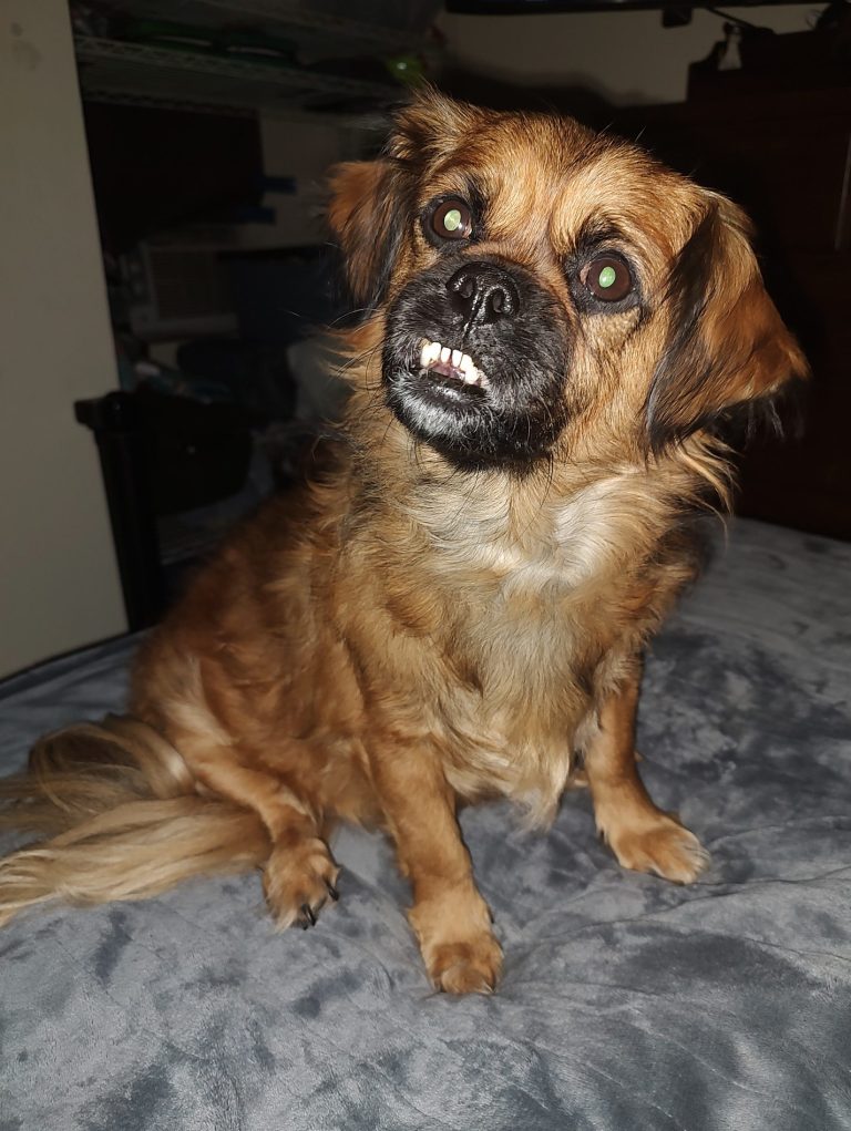 Andrea made another rescue run to North Texas to try to save a white-faced senior from being put down; however, unfortunately, since this senior was an owner-surrender, the shelter wouldn't allow her to take him home. Instead, she grabbed this snaggle-toothed boy after he whispered in her ear, "I only want to be with you-uuu!" His only death-row crime was taking up space on account of being unwanted for too long...until now. Hootie loves to bark and lecture all of the other dogs when they get a little excited. No one has the heart to tell him to keep his politics to himself.