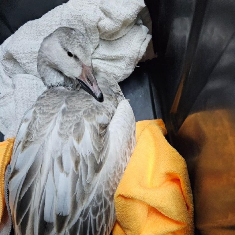 This snow goose crash landed in a Kemah marina and was very lethargic. She lasted about 24 hours, but not before sharing Avian Flu with her rescuer.