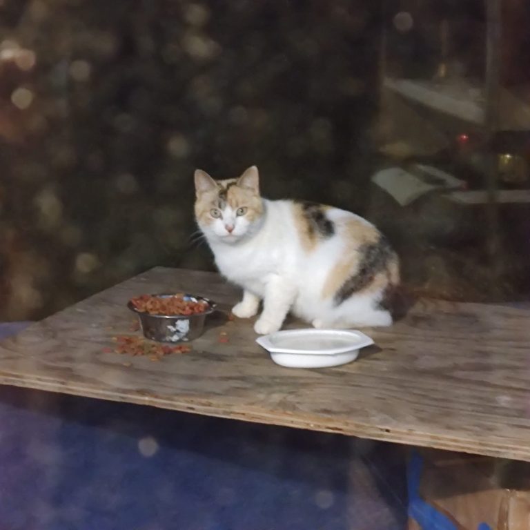 Meyer, another semi-feral, also cautiously calls FoxGarden her home base. She remains standoffish, but we're winning her over.