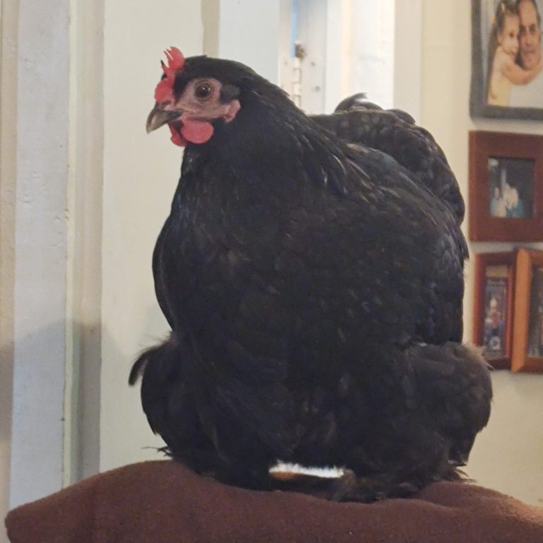 Acquired on Mardi Gras Tuesday, this gender-fluid zombie chicken doesn't know whether to cluck or crow sometimes.